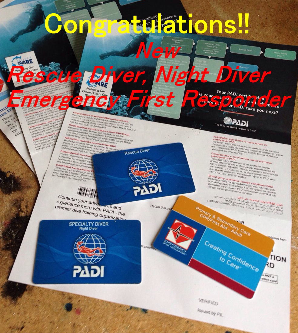 セルフレスキュースキルなどマイナートラブルの対処方なども習得するので、時間と予算が許すならダイビングを始めた皆さん全員に取って頂きたいコースです。